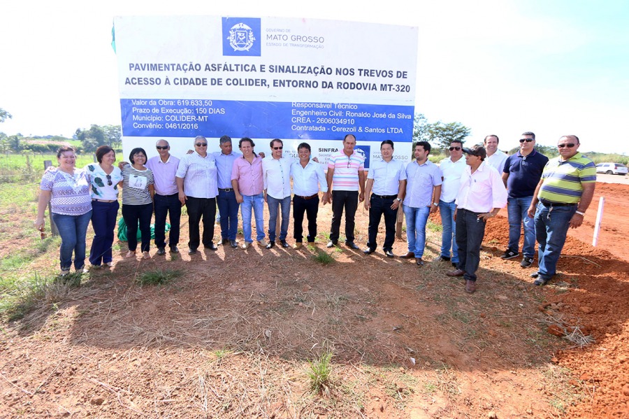 O presidente da Câmara de Colíder, Rica Matos (PSD), e os vereadores Dóris Sguizardi (DEM), Alencar Pereira (DEM), Pernambuco Filho (PMDB), Jaime Lima (DEM) e Zé Moreira (PSD) participaram no sábado (6/05) da solenidade de lançamento das obras para a construção de dois trevos no perímetro urbano da MT-320.
