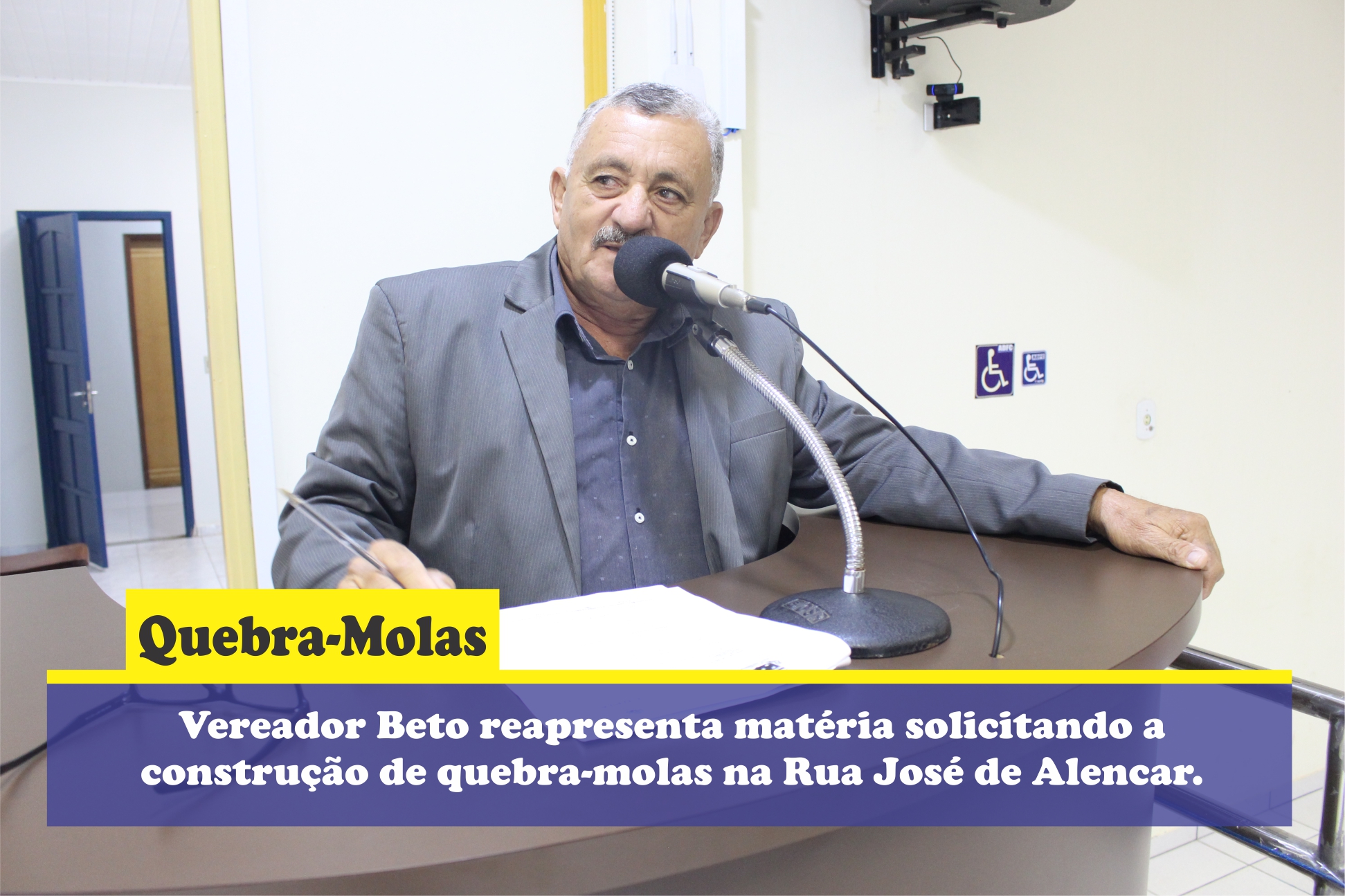O Vereador Beto Santos apresentou o Requerimento n° 017/2020, solicitando ao Secretário Municipal de Infraestrutura, Obras e Urbanismo, a construção de quebra-molas na Rua José de Alencar.